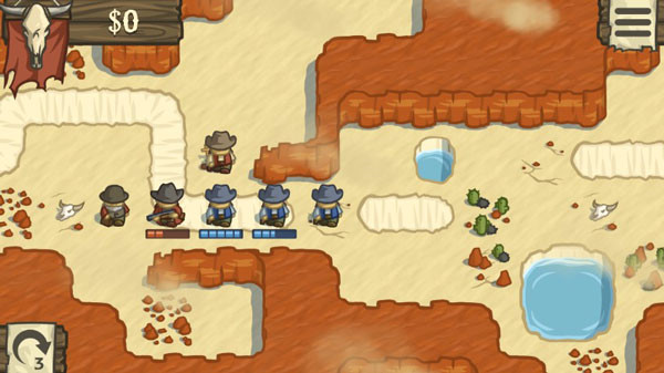 攻略:敌人人数多但是战线长所以不足为惧。试了几次建议先占领民房增加收入比较合理,再占领酒馆。建议第一个出肉盾Posses(火枪团)。
