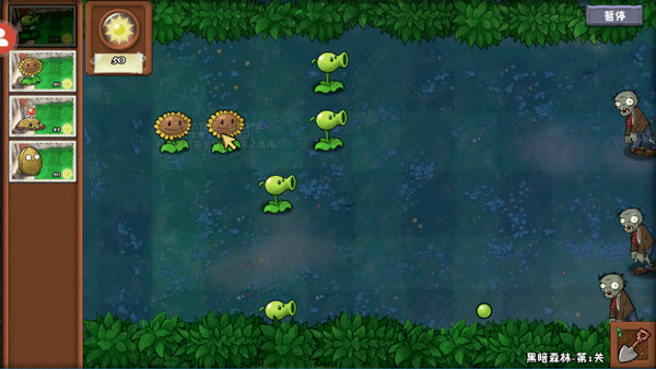 种下后向前移动,发现僵户则变为缓慢移动且高速射出火焰豌豆。
