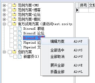 ET工作时,将首先从当前的焦点方案开始执行,即蓝色反亮显示的方案,见图示4中的‘网站-discuz 6.0(带回复)’