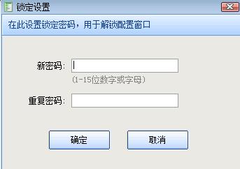 此功能用于设置打开各个配置窗口时的密码,当设置了锁定密码后,使用 菜单-锁定 功能,即可在用户离开电脑后,防止他人访问操作各项配置