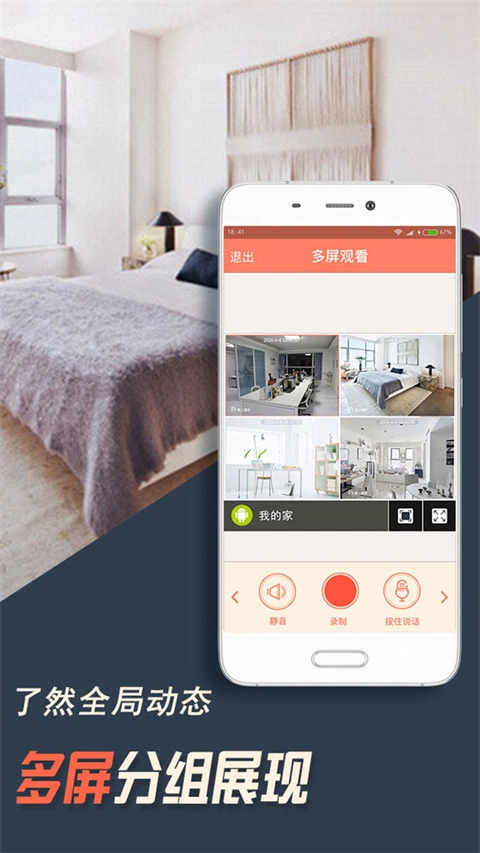掌上看家监控端手机版是一款家庭智能监控软件,该软件也就是掌上看家的手机观看端。很多用户平时上班或者是外出不在家的时候都会担心家里的老人或者是孩子出现什么状况,这时候就可以通过掌上看家app来解决这个问题。使用者只需要通过家里使用一台闲置的手机或者是通过监控摄像头设备安装掌上看家采集端,然后在自己的手机上安装掌上看家监控端手机版就能够看到家里的状况了,而且支持的设备十分多,大家可以在家里的手机、电脑、智能电视、机顶盒上安装它的采集端版本,然后通过自己观看监控端的手机扫码就可以连接,随时随地的远程监控家中的设备了。操作使用简单,除了监控之外,掌上看家app还能够进行实时通话,接收报警通知,调看录像等。