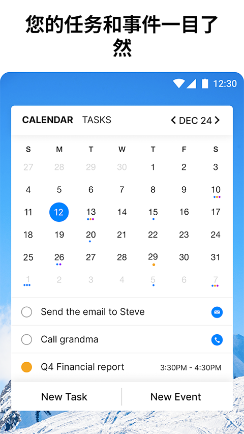 使用日历活动和任务控制您的日、周和月。这是管理时间和实现远大目标的最佳方法。