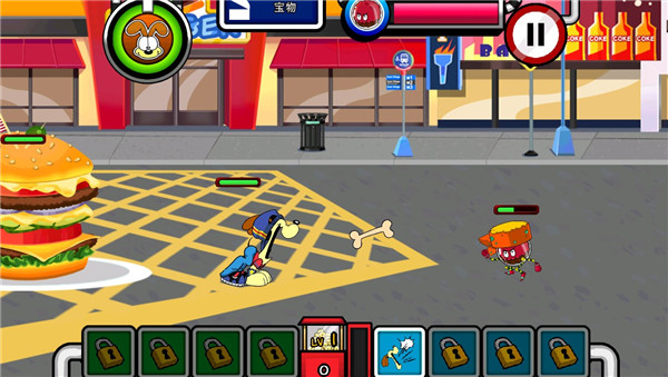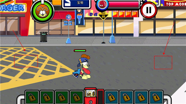 游戏的操作跟暴力板儿砖类似,玩家点击屏幕左右即可控制加菲猫的移动,点击相应的技能图标即可进行召唤伙伴、释放技能、升级等级等功能操作,玩家根据自己的策略合理分配即可。